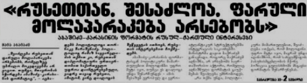 «Независмая газета» (რუსეთი), 3 დეკემბერი, 2014 წელი http://www.ng.ru/cis/2014-12-03/7_gruzia.html რუსეთმა და საქართველომ მოლაპარაკების პროცესის გაგრძელება გადაწყვიტეს თბილისში შიშობენ, რომ შესაძლოა აფხაზეთი „ნოვოროსიის“ პროცესში ჩაერთოს სოჭში ხელმოწერილი რუსეთ-აფხაზეთის ხელშეკრულების გამო ამჟამად რუსულ-ქართული მოლაპარაკებები შეჩერებულია: ჟენევის ფორმატში, რომელიც მრავალმხრივ კონსულტაციებს გულისხმობს დაძაბულობის შენელების მიზნით და პრაღის – „აბაშიძე-კარასინის“ ფორმატშიც, რომლის დროსაც ეკონომიკურ-ჰუმანიტარული ხასიათის საკითხები წყდებოდა, – ნათქვამია სტატიაში [...]