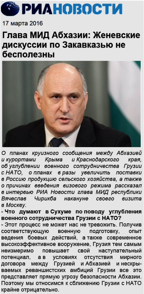 «Независимая газета» (რუსეთი): მოსკოვი და თბილისი კვლავ კლინჩის მდგომარეობაში არიან // საქართველოს ხელისუფლებამ და ოპოზიციამ რუსეთის საგარეო საქმეთა სამინისტროს კრიტიკაზე ნერვიული რეაგირება მოახდინა «КоммерсантЪ» (რუსეთი): ინტერვიუ ლეონიდ თიბილოვთან: „მცირე ქვეყანას საკუთარი თავის შენარჩუნება და დაცვა მხოლოდ ძლიერ მოკავშირესთან ერთად შეუძლია“ «РИА Новости» (რუსეთი): ინტერვიუ ვიაჩესლავ ჩირიკბასთან: „ჟენევის დისკუსიები ამიერკავკასიისათვის უსარგებლო არ არის“ —————– «Независимая газета» [...]